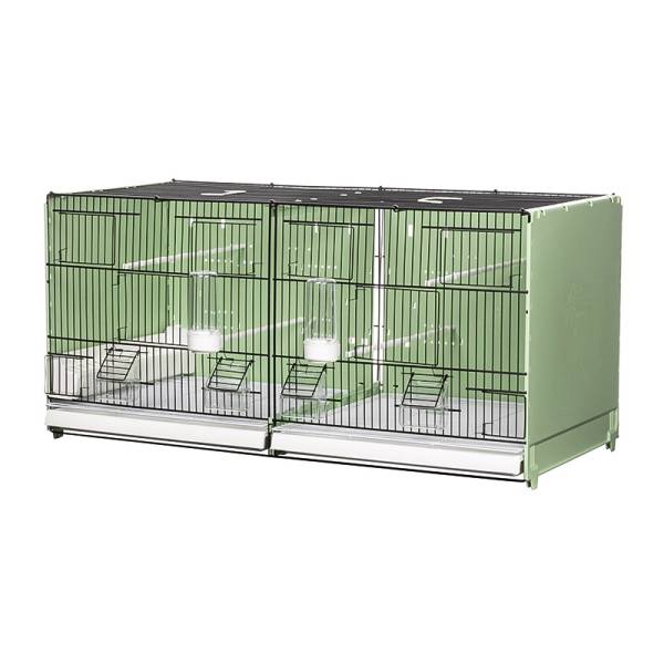 Jaula de cría Portofino de 90 cm, con laterales verdes y dorso de plástico verde, plegable, galvanizada y pintada de negro, completa con todos los accesorios para la crianza