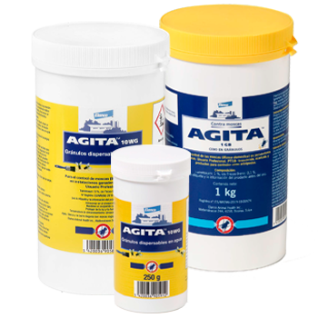Biocida adulticida para superficies no absorbentes, aplicable pintado en paneles (Agita® 10 WG) y/o esparcido en paneles ligeramente humedecidos (Agita® 1 GB).