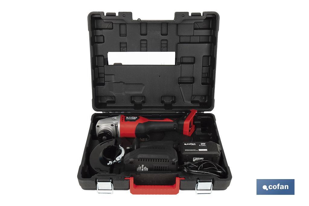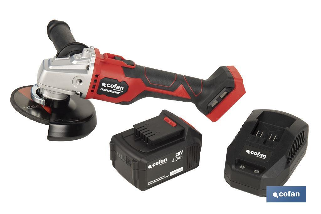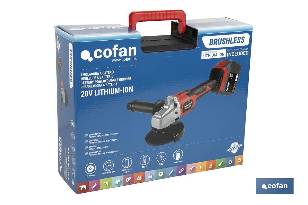 La Amoladora a Batería sin Escobillas 20V 4.0 Ah COFAN es una herramienta potente y versátil que ofrece la comodidad de trabajar sin cables y la confiabilidad de un motor sin escobillas, siendo ideal tanto para profesionales como para aficionados al bricolaje.
