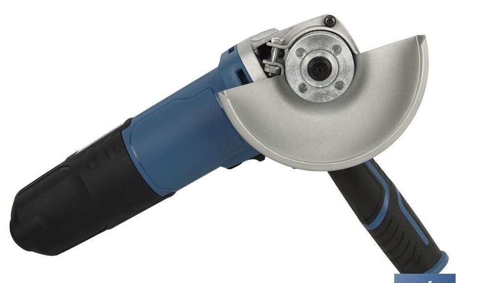 Amoladora Angular de 900W con velocidad variable, diseñada para discos de Ø115/125mm, ideal para cortar, pulir y desbastar con alta potencia y control.