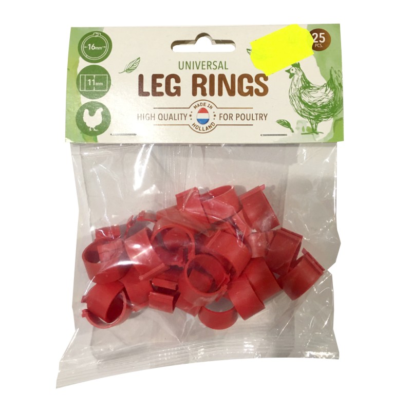 Pack de 25 anillas para gallinas, ideales para identificar aves fácilmente. Fabricadas en materiales resistentes, cómodas y reutilizables.