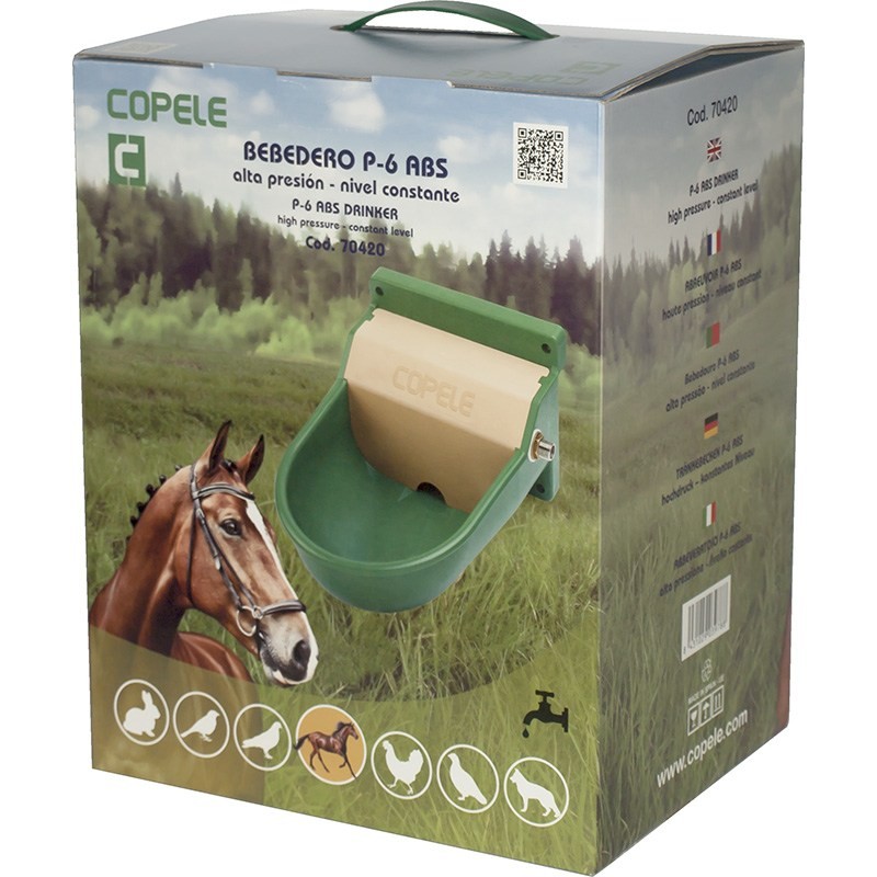 Bebedero fabricado en plástico ABS. Este bebedero trabaja con un nivel constante de agua que puede ser regulado mediante su válvula de alta presión. Se fija a la pared.