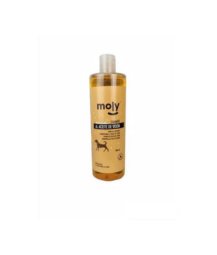 Champú Aceite Visón Moly 500ml es un champú nutritivo que combina las propiedades del aceite de visón para proporcionar una hidratación profunda, suavizando y dando brillo al pelaje de tu mascota.