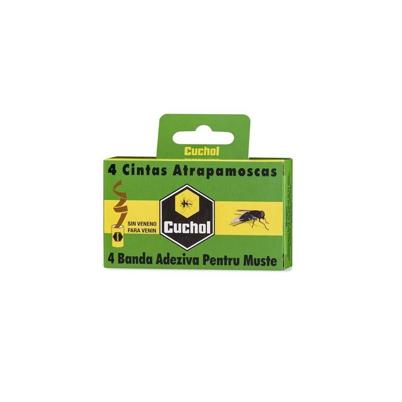 Las Cintas Atrapamoscas CUCHOL 4U son la solución ecológica y sin químicos para eliminar moscas e insectos voladores de forma eficaz. Fáciles de instalar y con un potente adhesivo, son ideales para el hogar, terrazas e invernaderos.