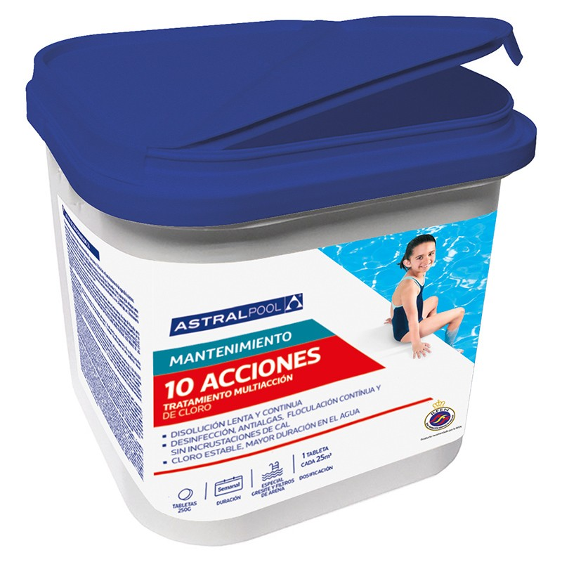 Confía en el Cloro AstralPool Multi Action 10 Plus para un cuidado completo de tu piscina.