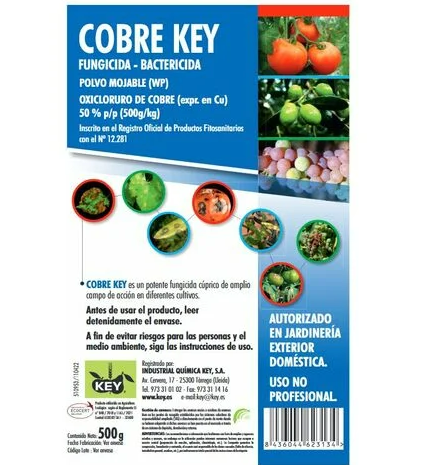 Fungicida Cobre Key es un tratamiento eficaz para combatir hongos en plantas, proporcionando protección y prevención contra enfermedades fúngicas en cultivos y jardines.