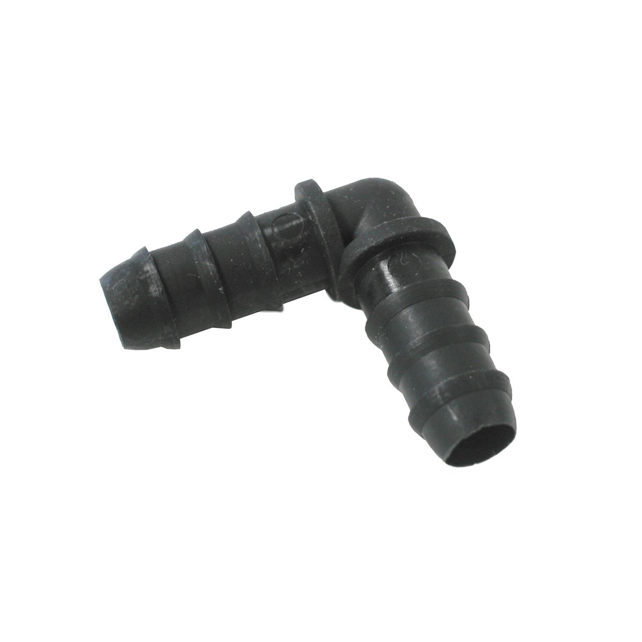 Codo P 12 mm para goteo, ideal para redirigir el flujo de agua en sistemas de riego por goteo. Conexión duradera y fácil instalación.