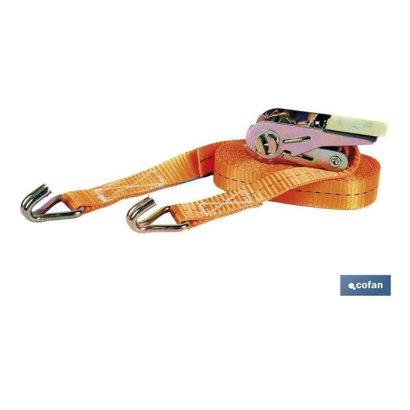 Cofan Blister Tensor Carraca 500 kg, 6 mts. Cinta con tensor de carraca ideal para asegurar cargas pesadas de forma segura y eficiente.