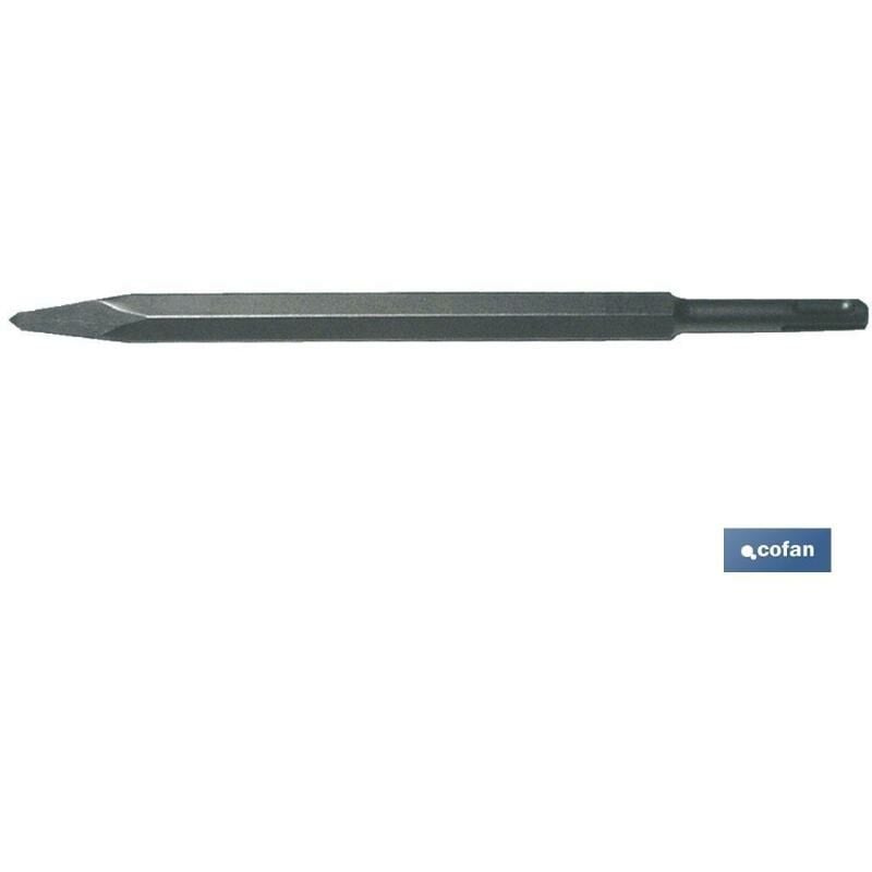 Cincel Puntero SDS Plus Cofan de 250 mm, ideal para perforar y demoler materiales duros como concreto y mampostería. Compatible con taladros de percusión SDS Plus.