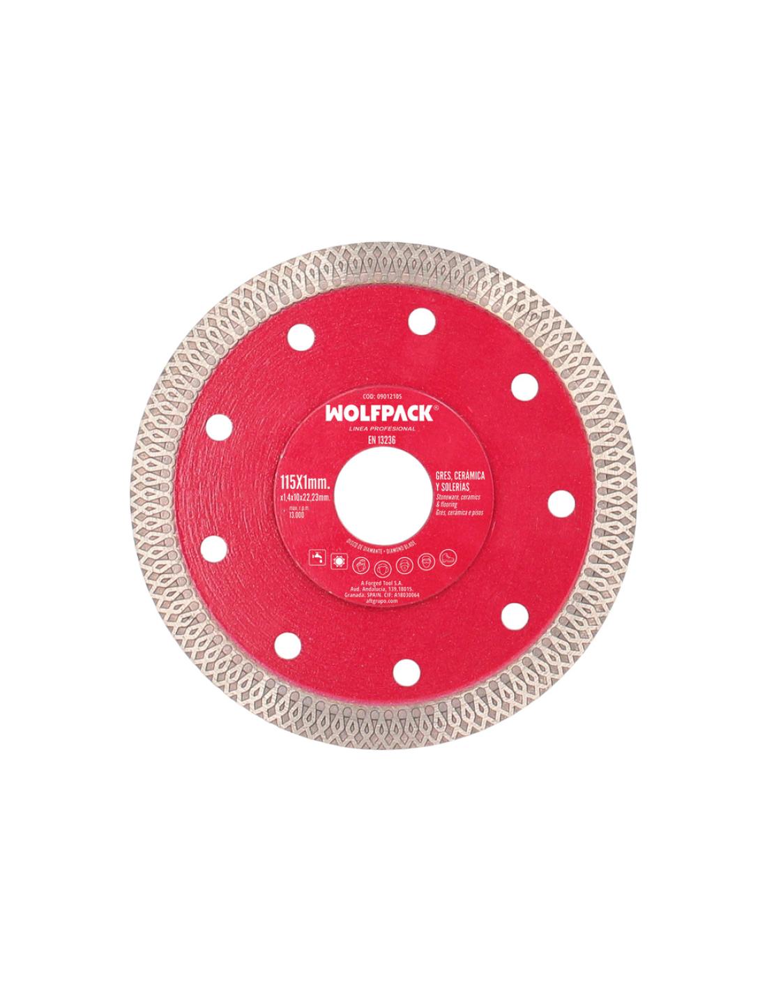 Disco Diamante Porcelánicos, Gres, Cerámica, Solerías 115x1mm: Disco de diamante con segmento diamantado, ideal para cortes precisos en porcelánicos, gres, cerámica y solerías.