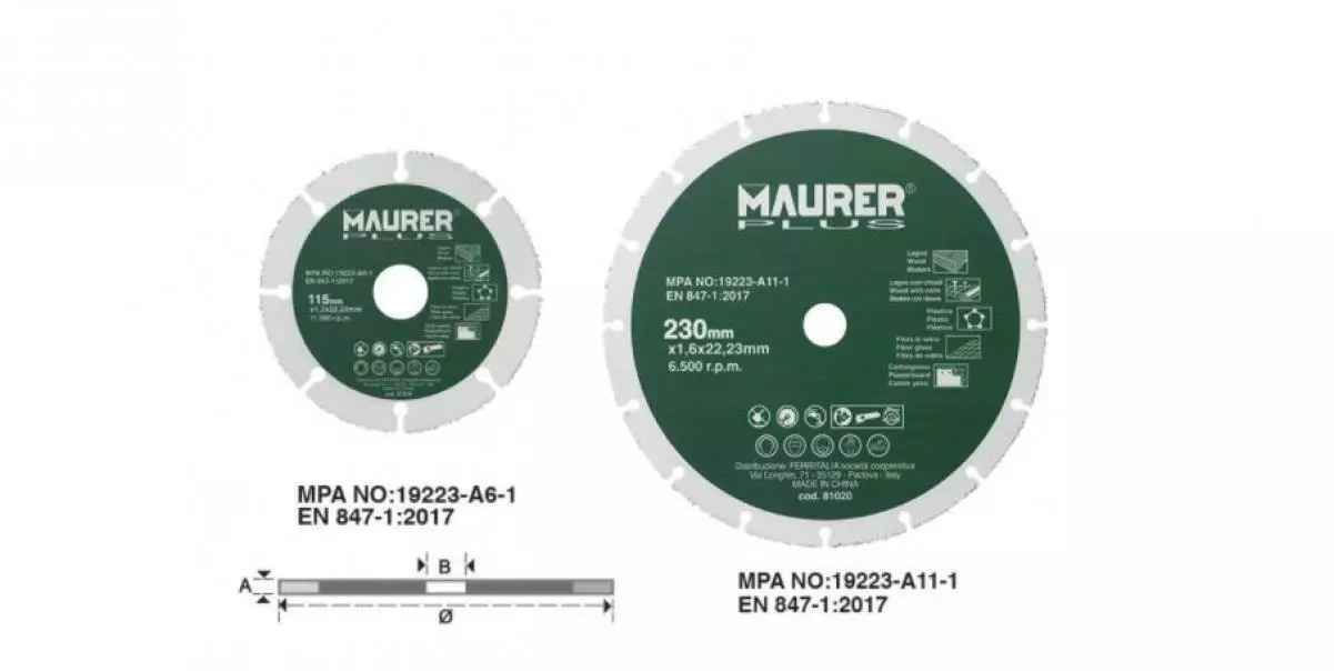 Disco de corte universal para madera Maurer Plus: Disco de alta calidad diseñado para cortar madera con precisión y eficiencia.