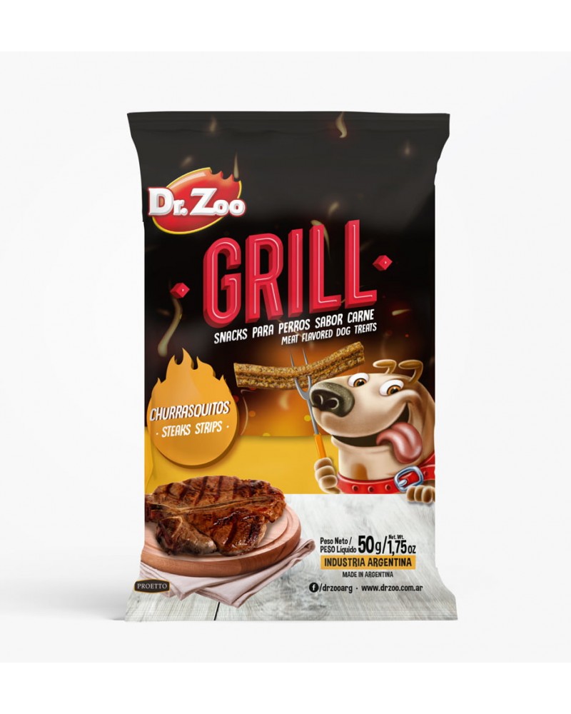 DR. ZOO GRILL CHURRASQUITOS son irresistibles y sabrosos snacks diseñados para perros, con el delicioso sabor a parrillada que hará que tu mascota disfrute de un capricho único. Estos churrasquititos tienen una textura crujiente que estimula el masticado y es ideal para perros de todas las edades y tamaños.