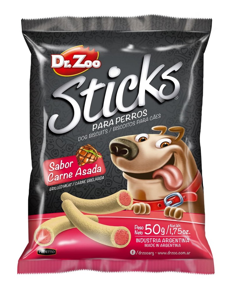 DR. ZOO STICKS DE CARNE ASADA son irresistibles snacks para perros con sabor a carne asada. De textura suave y masticable, son ideales como premio o recompensa, brindando una experiencia deliciosa y nutritiva para tu mascota.