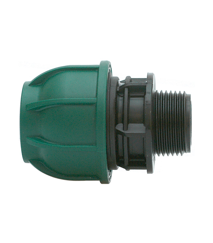 Enlace mixto Ø25mm 3/4”, conexión versátil para tuberías de polietileno y accesorios con rosca, ideal para sistemas de riego y fontanería.