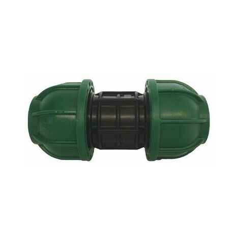 Enlace recto de polietileno de alta densidad (HDPE) de Ø 63 mm, ideal para unir tuberías en sistemas de riego y conducciones de agua a presión.