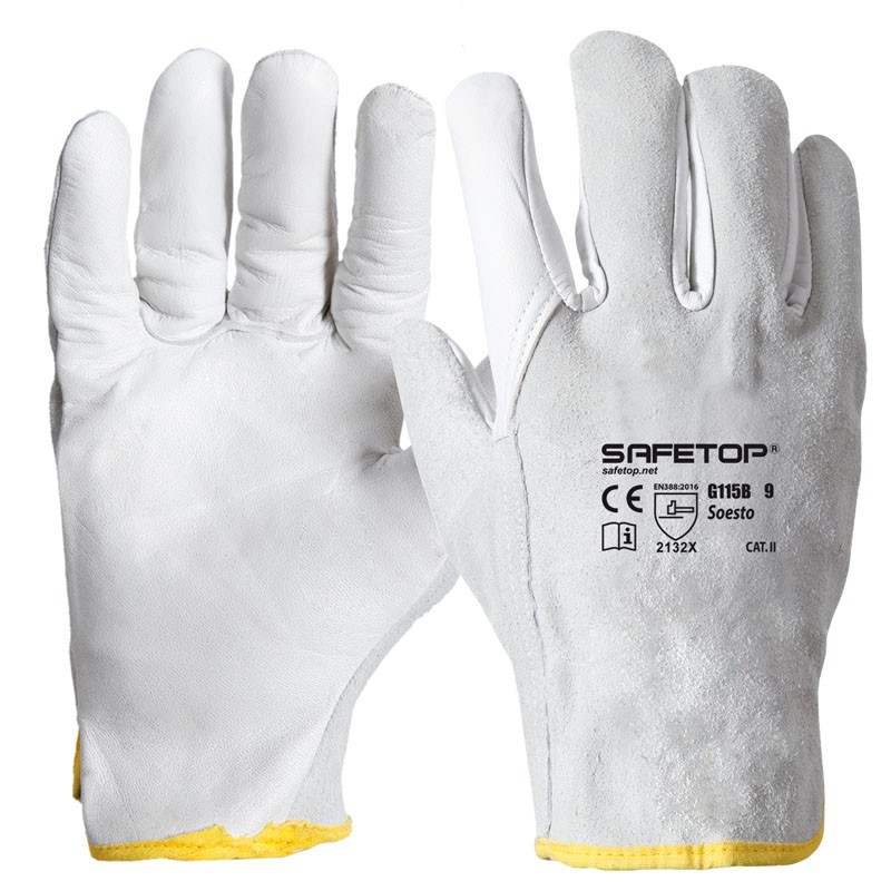 Guante de piel blanco SAFETOR Aba G214B, resistente y cómodo. Ideal para trabajos de precisión, protección y alta durabilidad.