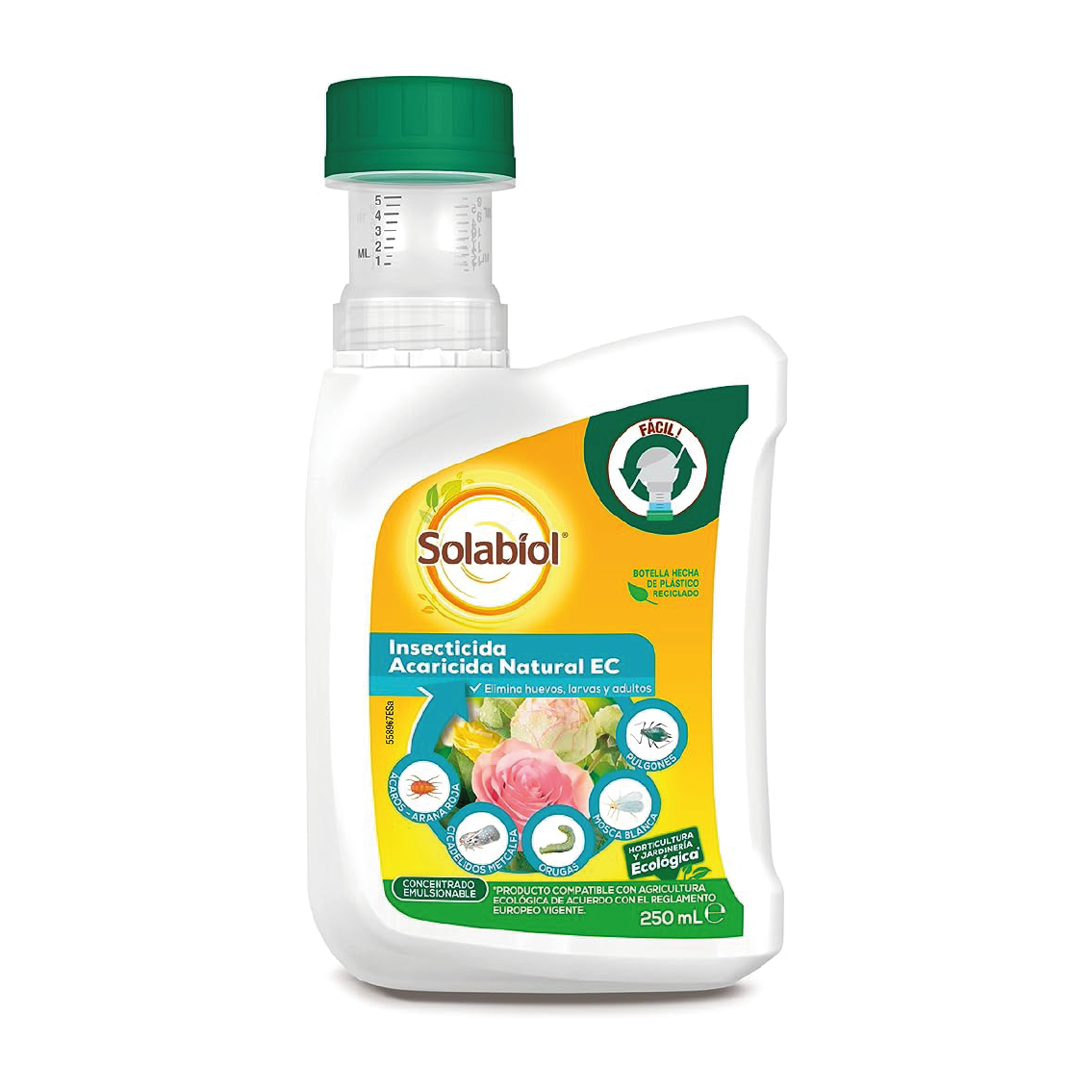 El Insecticida-Acaricida Natural EC Solabiol es una solución ecológica eficaz para el control de insectos y ácaros en jardines, huertos y cultivos. Con una fórmula 100% natural, basada en aceites vegetales, combate plagas como pulgones, mosca blanca, cochinillas y araña roja, sin dañar el medio ambiente ni la fauna beneficiosa.