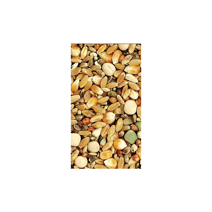 Ingredientes: Maíz enano, trigo especial, guisantes menudos, panicillo de Daimiel, alazor, dari, sorgo rojo, alpiste y cañamones. Componentes analíticos: proteína bruta (15,1%), humedad (9,2%), grasa bruta (6,6%), fibra bruta (6,7%), cenizas (2,5%), calcio (0,17%), fósforo (0,39%), sodio (150 ppm), vitamina A (480 UI/100 g), vitamina D3 (103 UI/100 g).COMPOSICIÓN Trigo, maíz, guisantes verdes, sorgo rojo, alazor, alpiste, sorgo blanco, panecillo.