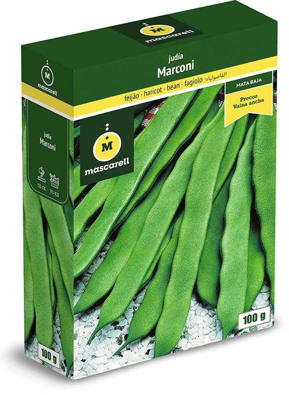 Las semillas de judía Marconi Mascarell 100gr son ideales para cultivar judías de vaina verde, largas y tiernas. Esta variedad es altamente productiva, resistente y perfecta para obtener una cosecha abundante y deliciosa