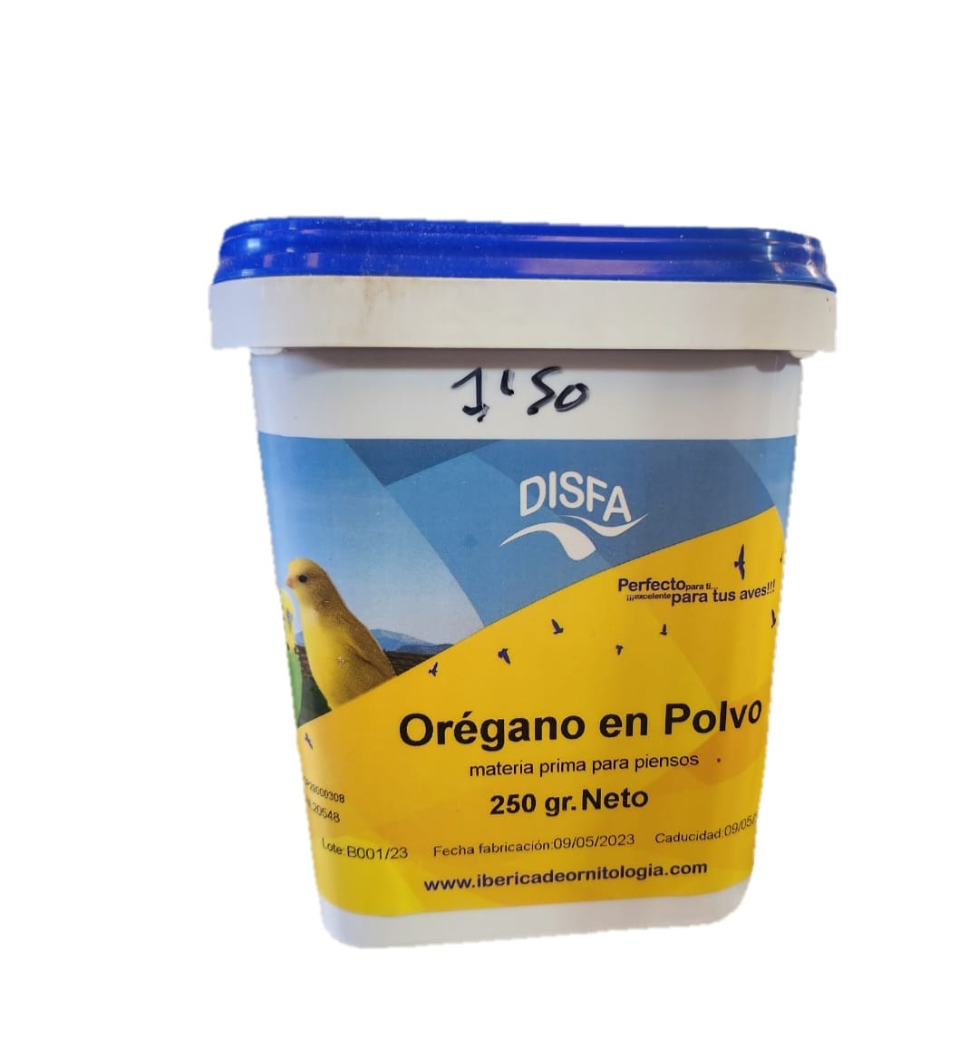 El Orégano en Polvo Disfa 250gr es un suplemento natural de gran calidad que ayudará a mantener a tus aves saludables, activas y con un plumaje brillante. Ideal para su uso diario o como tratamiento en épocas de cambio o enfermedad.