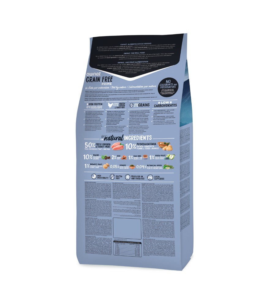 El pienso Ownat Prime Grain Free Senior Pollo y Pavo es una opción nutricionalmente completa y equilibrada, diseñada para satisfacer las necesidades específicas de los perros senior a partir de los 7-8 años de edad. Su fórmula sin cereales y con un 50% de carne fresca de pollo y pavo asegura una alta palatabilidad y digestibilidad, adaptándose perfectamente al sistema digestivo de los perros mayores.