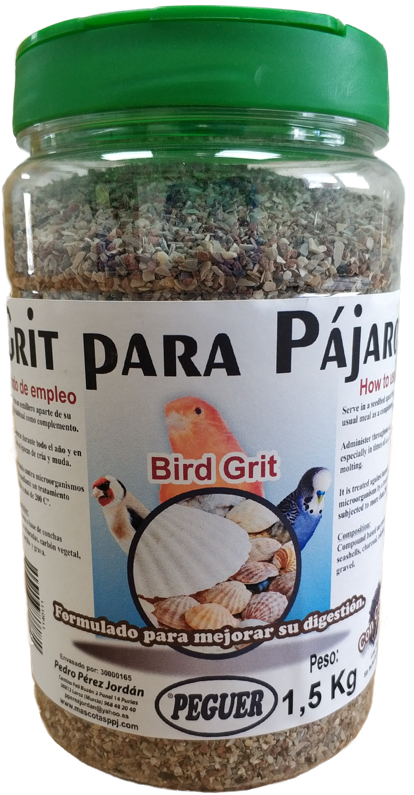Peguer Grit para Pájaros (1.5 kg), un suplemento mineral esencial que mejora la digestión y aporta calcio y minerales para el bienestar de tus aves. Ideal para su salud y vitalidad.