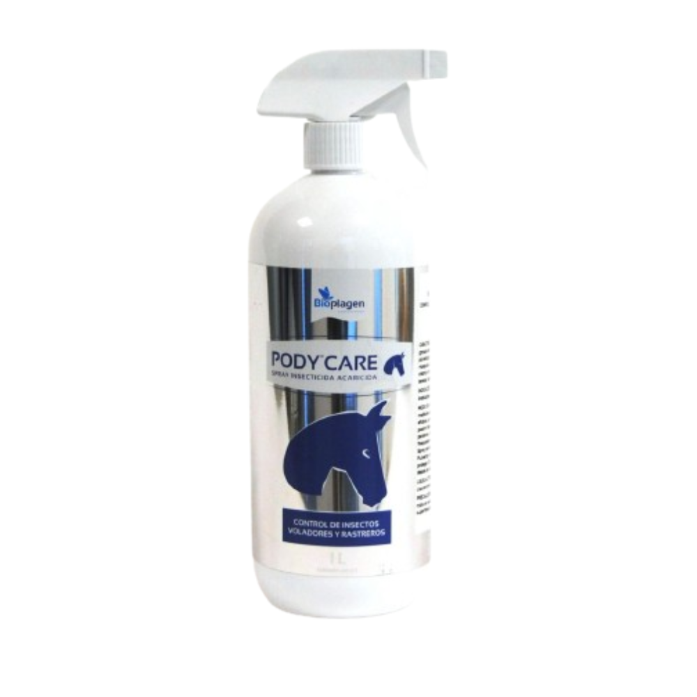 El PODY CARE Insecticida para Caballos Spray de 1 litro es un potente aerosol diseñado para eliminar y repeler insectos molestos en los caballos, como moscas, tábanos y garrapatas. Su fórmula rápida y efectiva proporciona protección duradera y mejora el bienestar del animal.