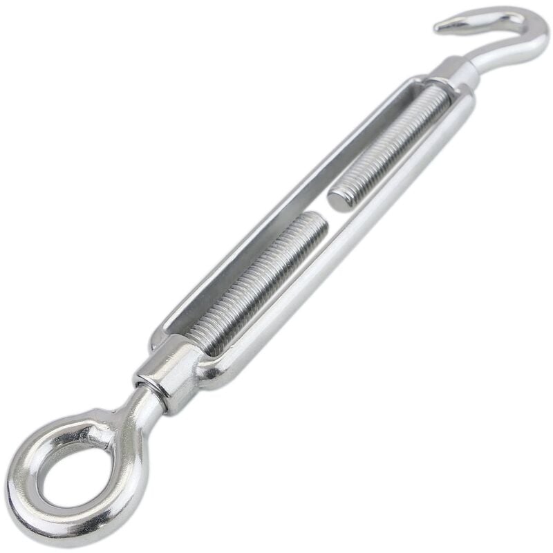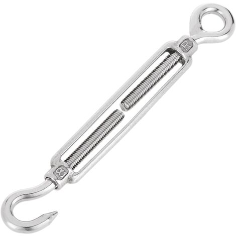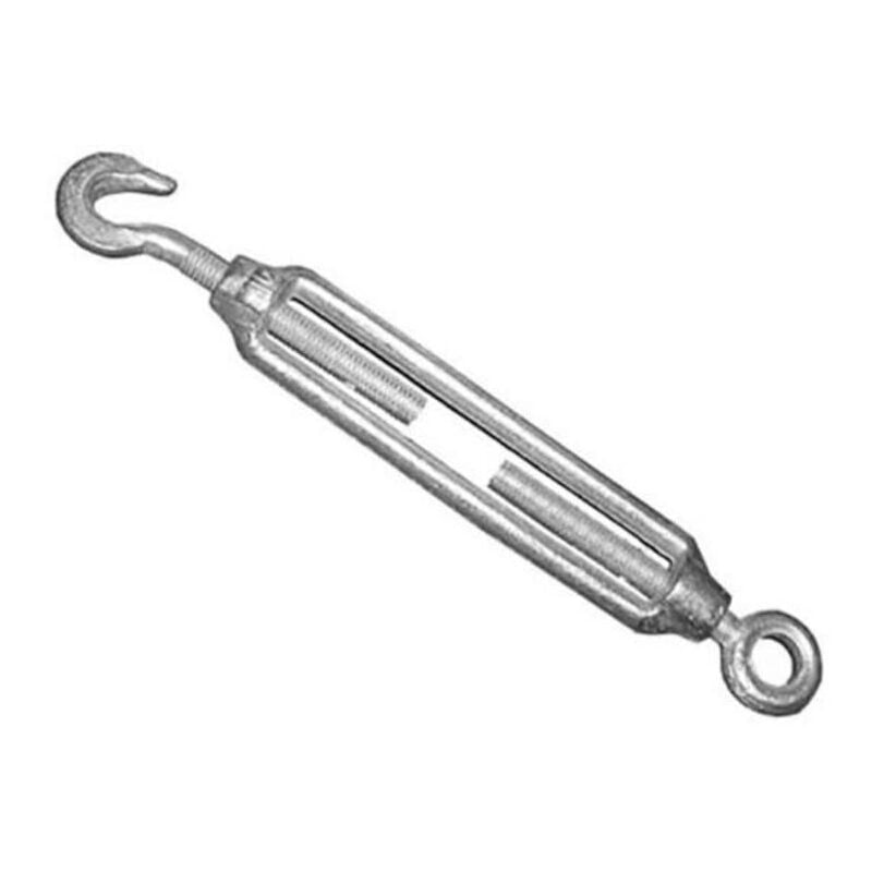 Tensor de cable de acero anilla a gancho con rosca, ideal para ajustar y tensar cables en estructuras, cerramientos y sistemas de sujeción, con alta resistencia y durabilidad.