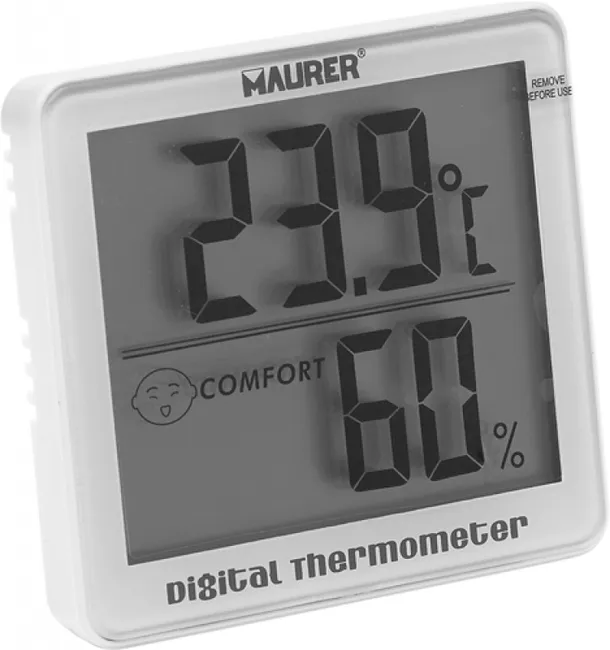 El Termómetro Digital Maurer con Indicador de Humedad es una herramienta precisa y fácil de usar que mide tanto la temperatura como la humedad ambiental. Ideal para interiores, ofrece lecturas rápidas y claras en una pantalla digital.