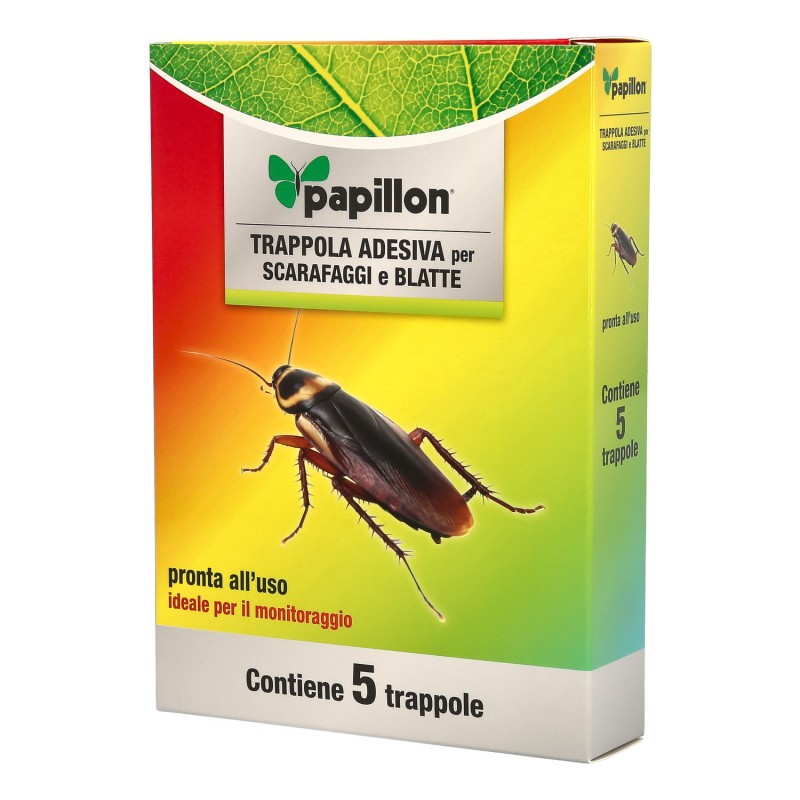 – Trampa adhesiva de cartón plastificado con atrayente alimenticio de cucarachas.
