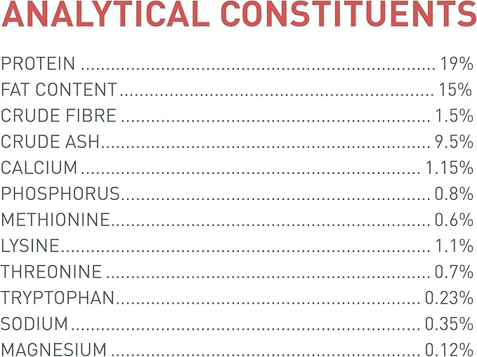 • Completamente equilibrado: Contiene todos los nutrientes esenciales para el crecimiento y la salud de las crías.