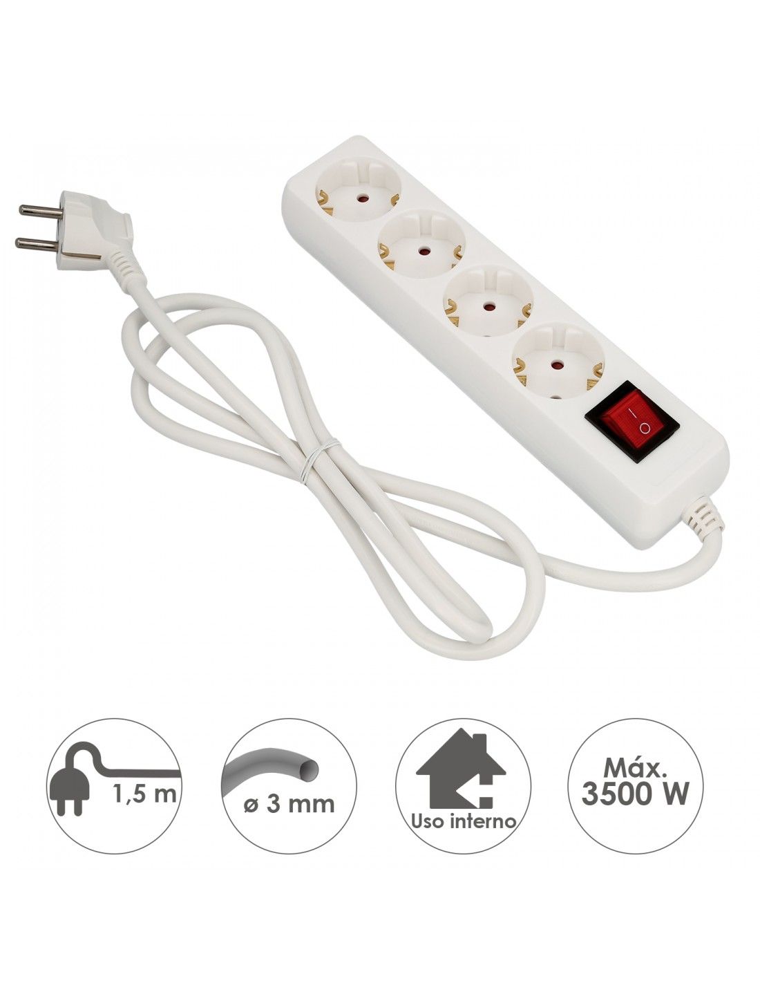 La Wolfpack Base Múltiple 4 Tomas con Toma de Tierra y Interruptor es una regleta de alta calidad que ofrece 4 tomas de corriente para conectar varios dispositivos. Cuenta con toma de tierra para mayor seguridad y un interruptor para un fácil control del encendido y apagado. Ideal para hogares, oficinas o espacios de trabajo.
