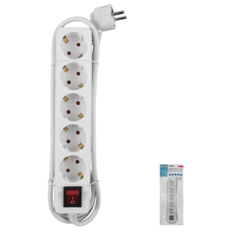 La Wolfpack Línea Profesional Base Múltiple 5 Tomas con Toma de Tierra y Interruptor es una regleta de alta calidad que permite conectar hasta 5 dispositivos de forma segura. Con toma de tierra y un interruptor de encendido/apagado, ofrece protección adicional contra sobrecargas, ideal para oficinas, talleres o entornos profesionales.